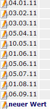 Einschieben von neuen Werten zwischen bestehende Ablesedaten: Sie haben die Möglichkeit, zwischen zwei bestehenden Zählerständen neue Zählerstände anzulegen. Wenn Sie das Editierfeld "neuer Wert" anklicken und ein vergangenes Datum eintragen, sortiert sich diese Eingabe an der passenden Stelle ein.