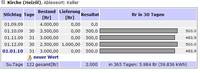 Bei einer neuen Öllieferung liest man den Ölstand ab BEVOR getankt wird und trägt diesen Wert in die Rubrik "Bestand" ein. ANSCHLIEßEND gibt man die Anzahl der Litermenge in die Rubrik "Lieferung" ein. In der Beispielgrafik wird eine Kirche gezeigt, die monatlich 500 Liter Öl verbraucht und die am 1.12.2009 1.000 Liter Öl tankt. Diese Art einzutragen gilt natürlich auch für alle anderen Fälle, in denen nicht mit Zählern erfasst wird, sondern der Bestand erhoben wird.