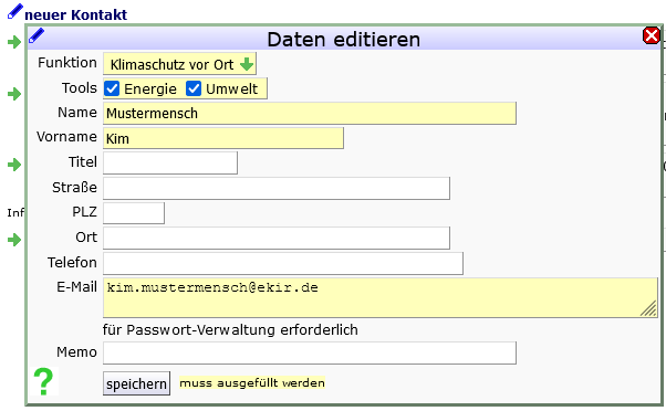 - Neue Kontakte können Sie selbst anlegen, z.B. für Teammitglieder, Auditierende, Mitglieder Ihres Leitungsgremiums, Gäste.