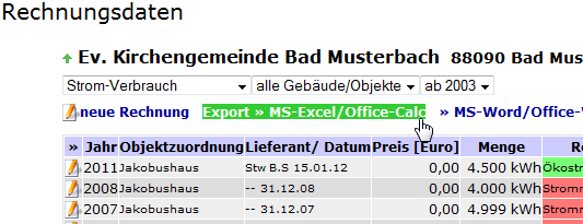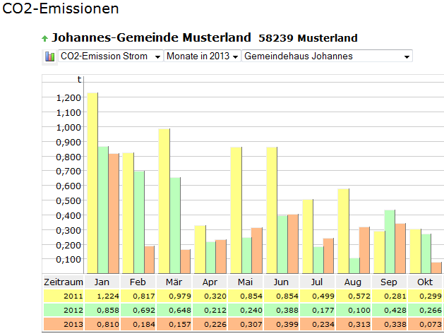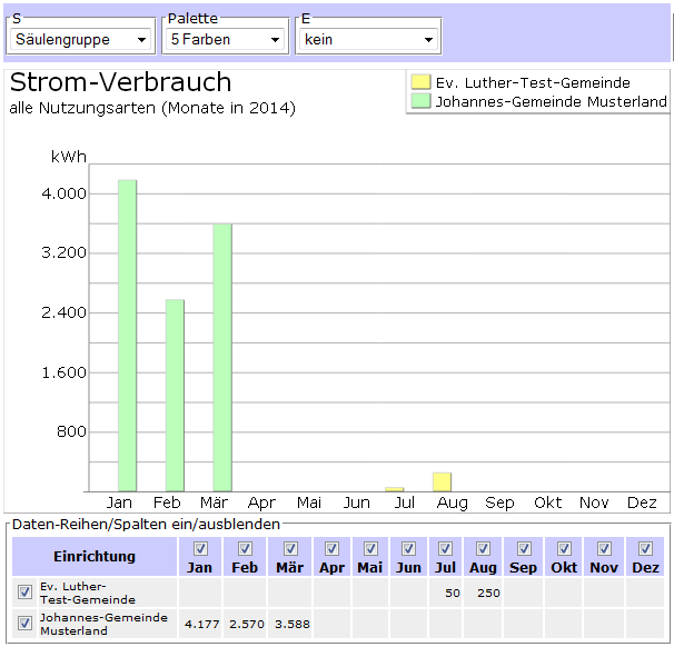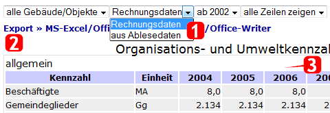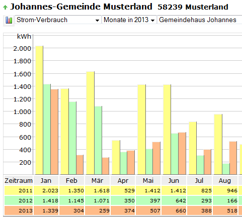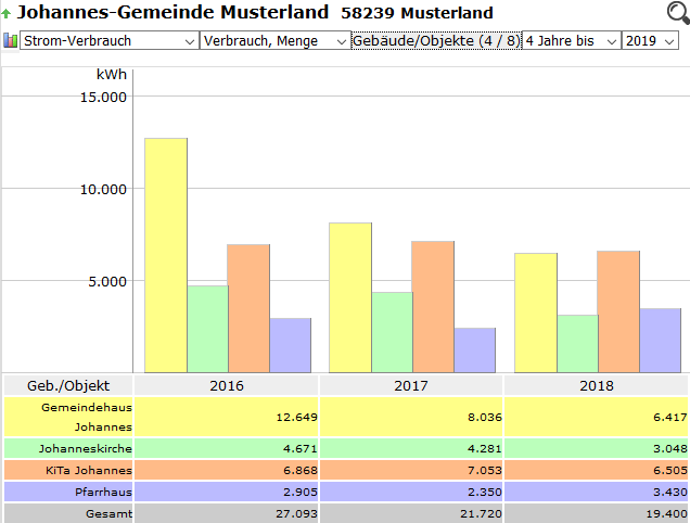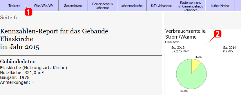 - Wird nur ein einziges Gebäude ausgewählt, werden neben dem ausgewählten Jahr noch die beiden Vorjahre angezeigt.