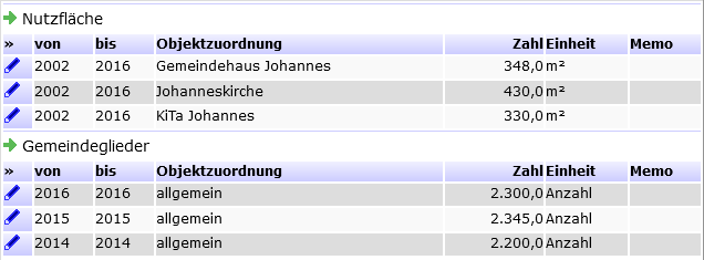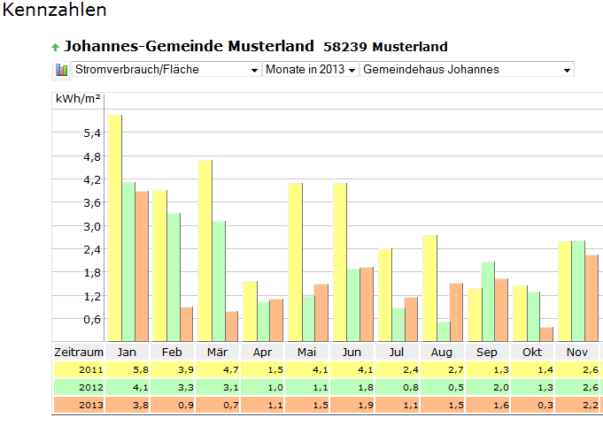 - Zum Bilden von Kennzahlen geben Sie die benötigten Bezugsdaten wie z.B. beheizte Flächen, Gemeindeglieder- und Personalzahlen, Nutzungsstunden usw. hier ein.