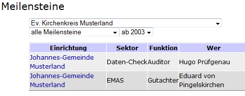 - Externe Validierungen (EMAS, Grüner Hahn/Gockel, Datencheck) werden vom jeweiligen Projektbüro der Landeskirchen, Bistümer und sonstigen Organisationen eingetragen.