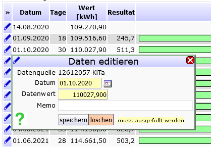 Ablesewerte kontinuierlich eingeben/überprüfen
